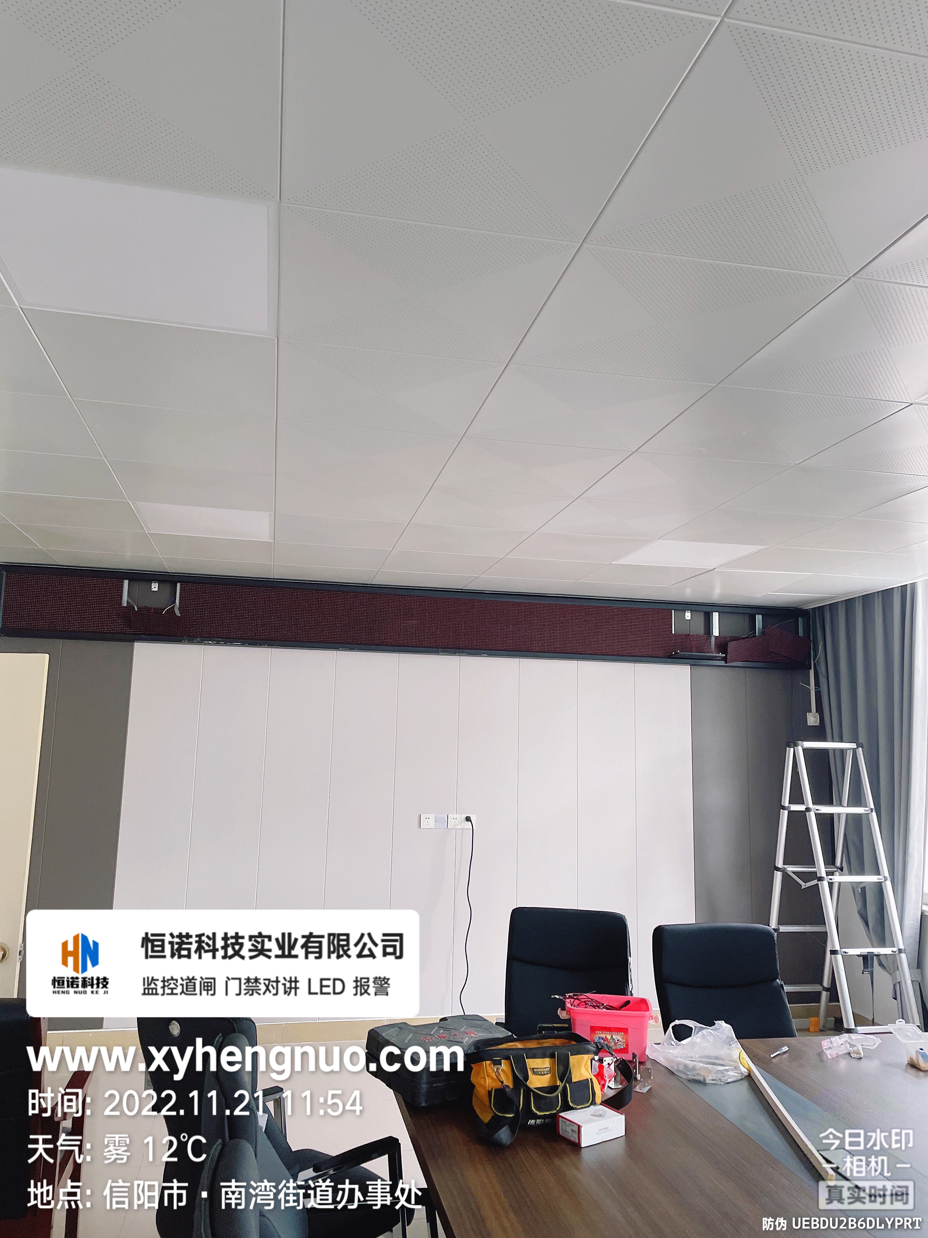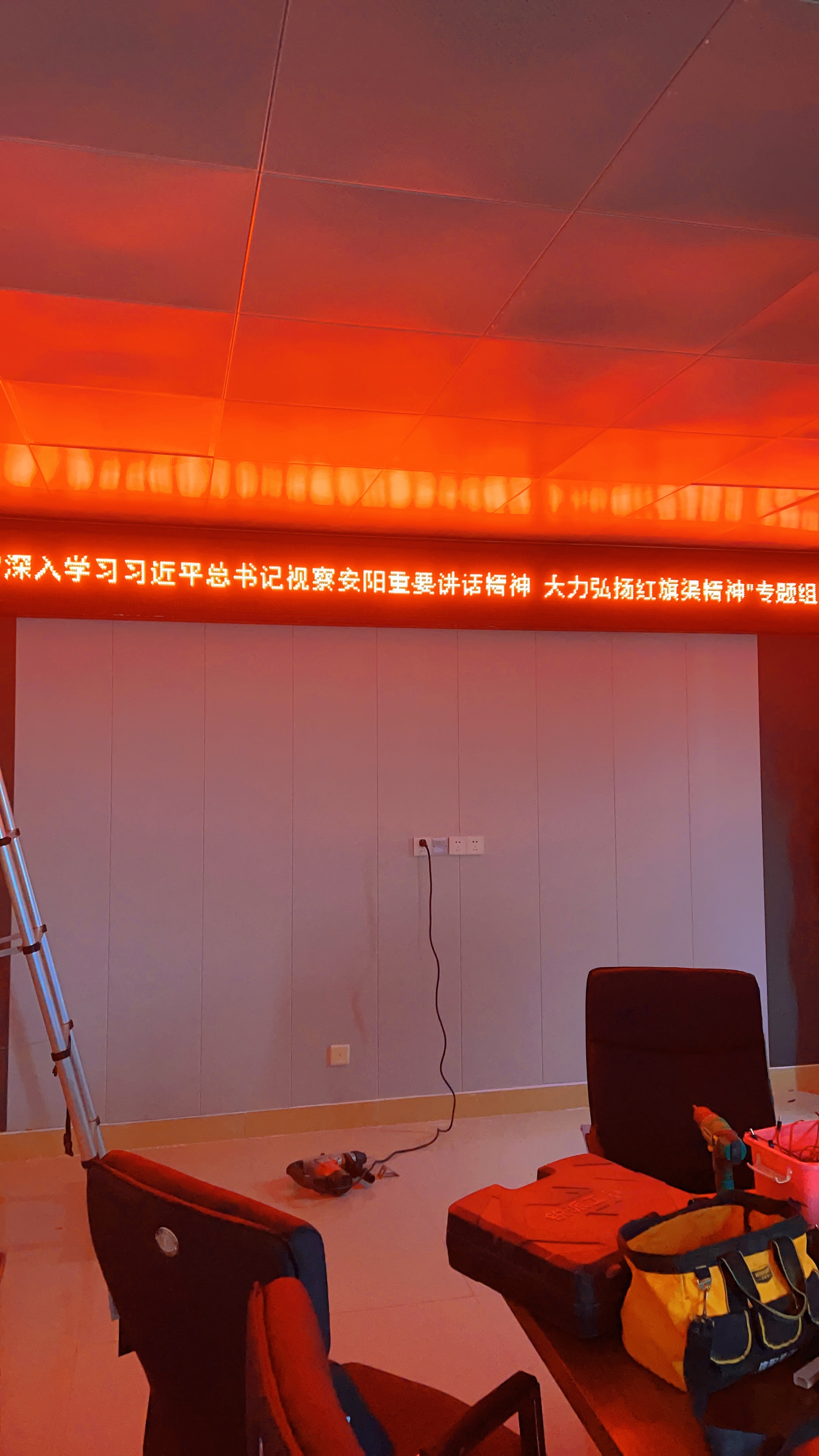 我司安裝的南灣街道辦事處會(huì)議室單紅LED會(huì)標(biāo)屏