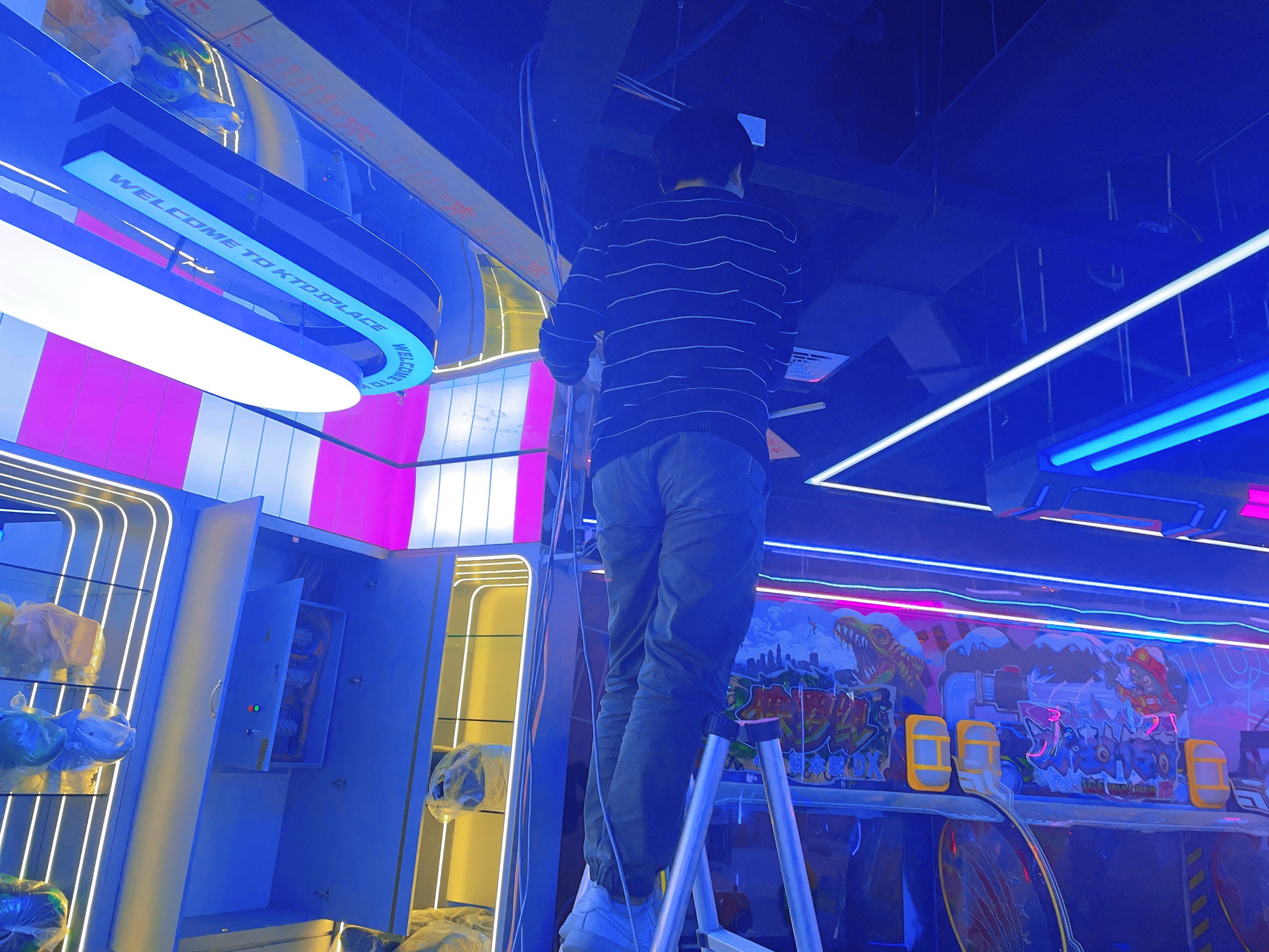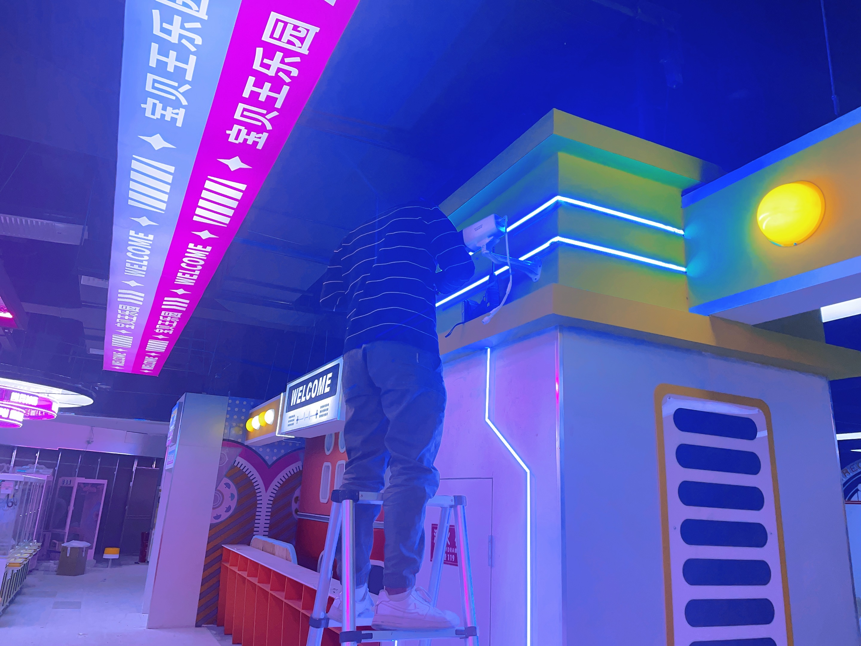 2023年12月信陽萬達廣場二樓寶貝王,監(jiān)控安裝,網(wǎng)絡(luò)布線,施工照片!監(jiān)控采用??低?00萬雙光全彩POE攝像機,線材采用普天天紀六類網(wǎng)線